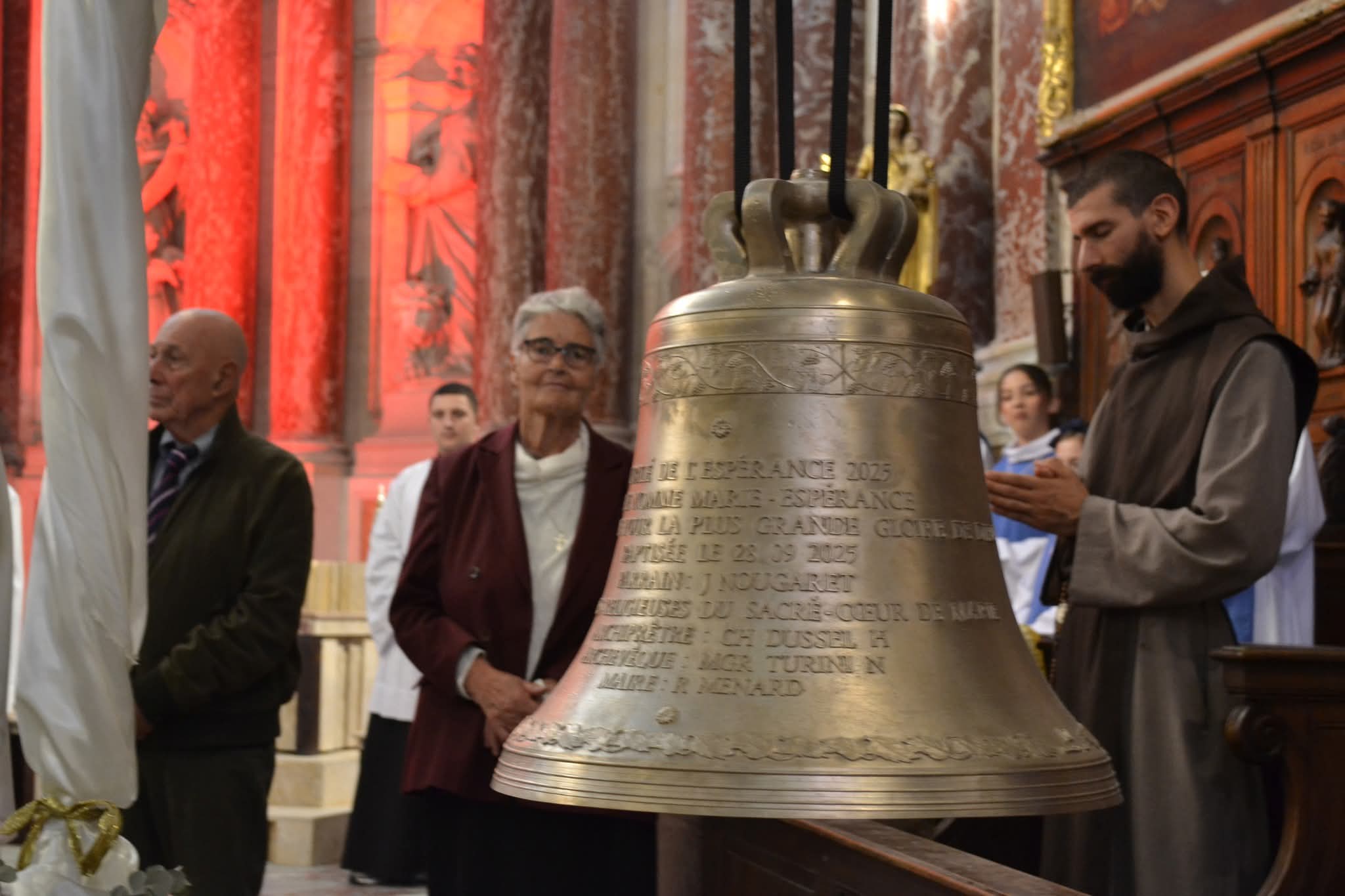 Un autre moment fort a marqué nos cœurs : le baptême de la nouvelle cloche, désormais appelée Marie-espérance. Par sa voix claire et joyeuse, elle rappellera chaque jour aux habitants de notre ville la présence de Dieu au milieu de nous. Elle sonnera l’espérance au cœur des joies comme des épreuves, et invitera chacun à lever les yeux vers le Ciel.