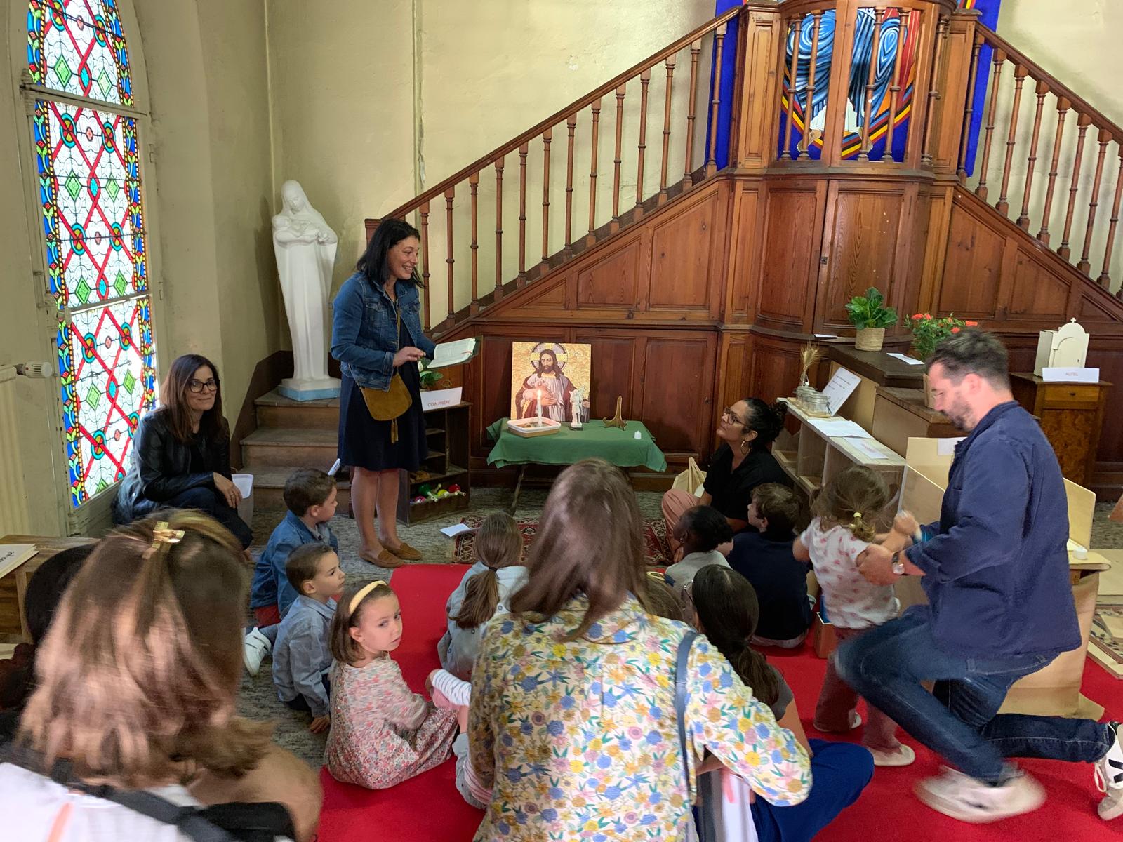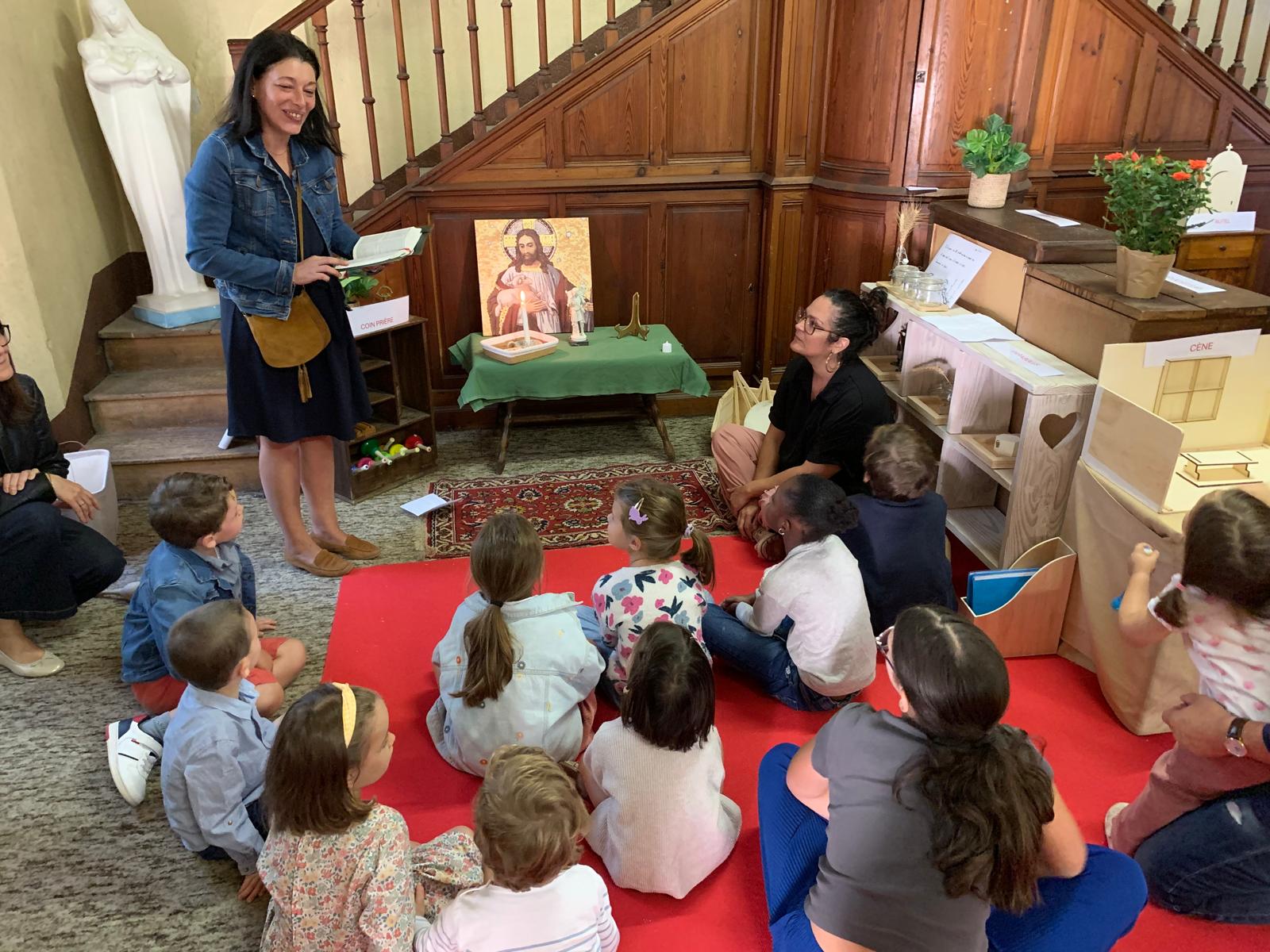 La catéchèse est enracinée dans l’Écriture et la liturgie de l’Église et s’inspire des principes d’éducation de Maria Montessori.