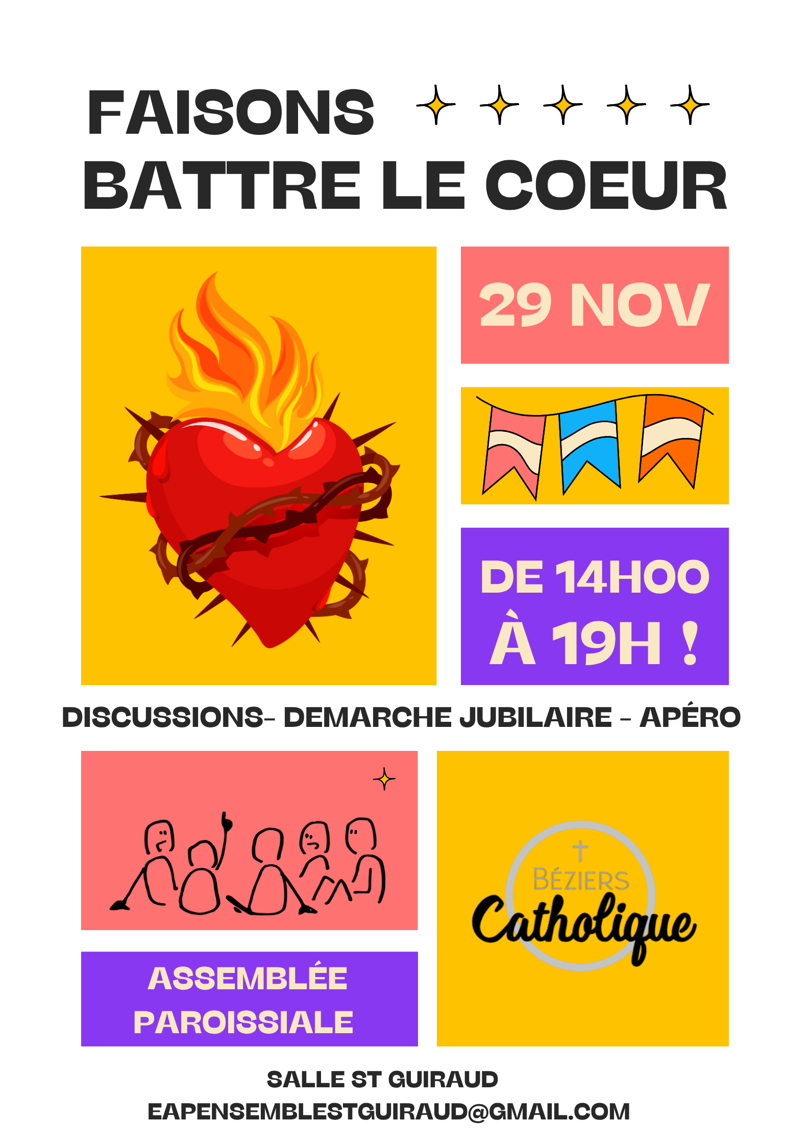 Son titre, « Faisons battre le Cœur », exprime notre désir de faire vivre pleinement le cœur de notre Église locale, en réfléchissant ensemble aux moyens concrets d’y faire grandir la foi, la joie et la fraternité.
