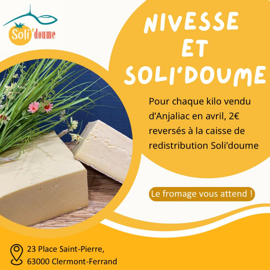Mais aussi la Fromagerie Nivesse, qui met en vente l’Anjaliac, fromage au lait de vache fabriqué dans le Cantal. Il rejoint les fromages type cantal, salers mais celui-ci sera moins pressé. Sa texture de pâte est grasse et fondante et son goût assez doux.
