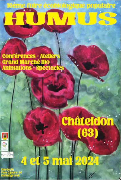 Les 4 et 5 mai 2024, la Doume tiendra un stand à la 10ème foire écobiologique populaire Humus à Châteldon : La foire HUMUS est d’abord un grand marché animé par plus de 130